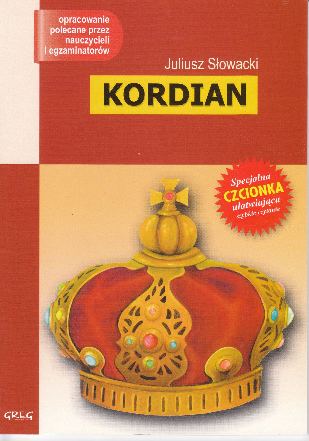Kordian : część pierwsza trylogii Spisek koronacyjny / Juliusz Słowacki ; oprac. Wojciech Rzehak, Honorata Liszka. - Wydanie 2 rozszerzone i uzupełnione - Kraków : Greg, 2011, 2012 - 128 stron ; 21 cm.