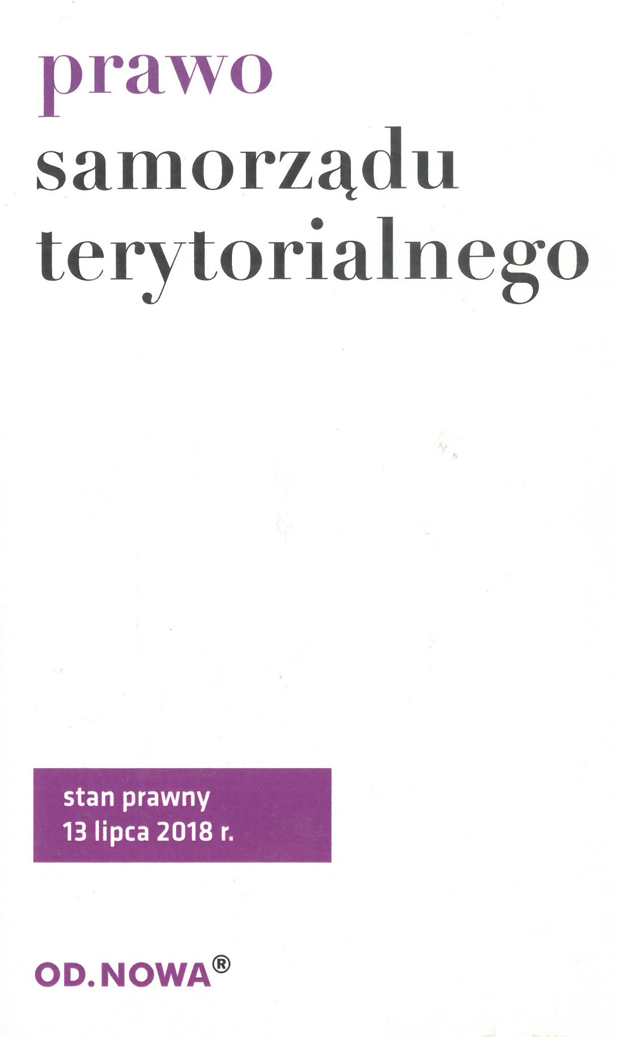Prawo samorządu terytorialnego / [opracowanie redakcyjne i merytoryczne Anna Prus]. - Wydanie 7., stan prawny 13 lipca 2018 r. - Bielsko-Biała : Wydawnictwo Od.Nowa, [2018]. - 154 strony ; 18 cm.