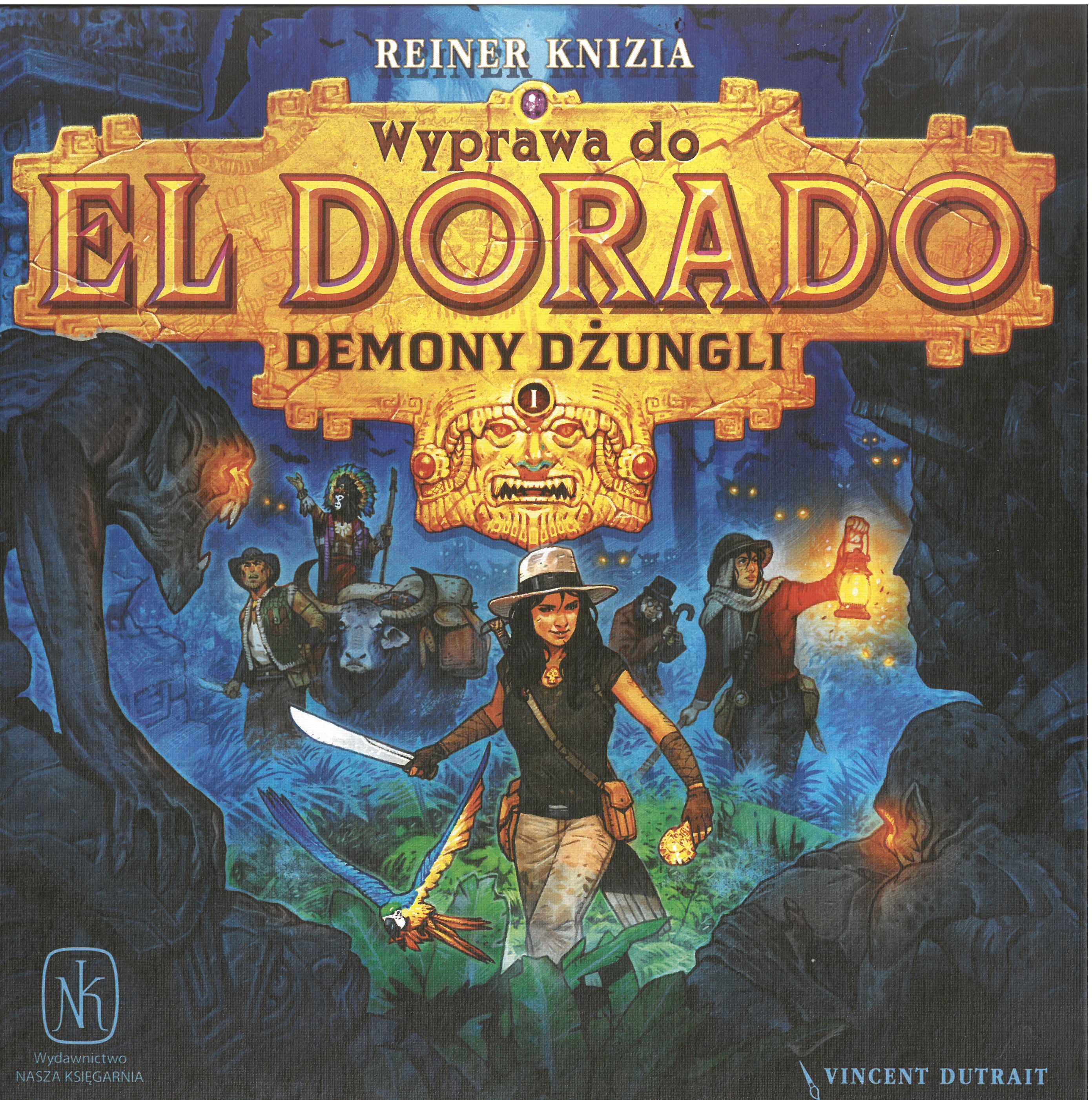 Wyprawa do El Dorado: Demony dżungli / autor Reiner Knizia ; ilustracje i projekt graficzny Vincent Dutrait. - Warszawa : Nasza Księgarnia 2018. - 1 gra ( 3 płytki terenu, 41 kart, 3 dodatkowe karty,20 żetonów klątwy, 18 żetonów jaskiń, 2 blokady, 1 baza): karton, papier, kolor ; w pudełku 24x24x5 cm + instrukcja.
