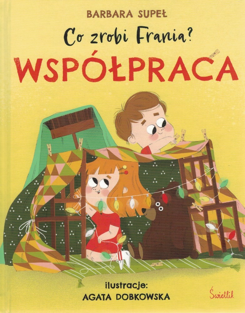 "W książce "Co zrobi Frania? Współpraca" autorka Barbara Supeł pokazuje świat pięcioletniej dziewczynki o imieniu Frania, która uczy się współpracy z innymi domownikami, tworząc różne rzeczy i pomagając w obowiązkach domowych. Książeczka jest okraszona ilustracjami autorstwa Agaty Dobkowskiej, które idealnie oddają klimat opowieści. Pozycja idealna zarówno dla młodszych dzieci, zainteresowanych jedynie obrazkami, jak i dla tych starszych, które stawiają już pierwsze kroki w czytaniu. Frania, główna bohaterka książeczki, to pięciolatka, która jest członkiem pięcioosobowej rodziny. Ma mamę, tatę, starszego brata Ryśka oraz Anielkę, młodszą siostrzyczkę, która, jak określa ją bohaterka, jest jeszcze dzidzią, bo śpi w łóżku z rodzicami. Frania codziennie spędza czas w przedszkolu z innymi dzieciakami. Oczywiście pod warunkiem, że akurat nie ma zielonego kataru." [Tania książka.pl]