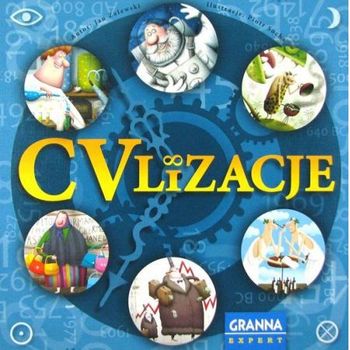 CVlizacje/ Jan Zalewski ; ilustracje Piotr Socha. - Warszawa : Granna, copyright 2016. - 1 gra (plansza, 90 kart, drewniana korona, drewniany hełm wodza, 60 drewnianych znaczników, 42 żetony) : drewno, tektura, kolor ; w pudełku 8x26x26 cm + instrukcja (7, [1] strona : ilustracje ; 23 cm).