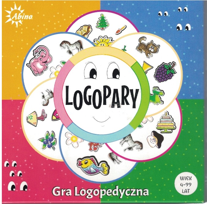 Logopary : gra logopedyczna. - Gospodarz : Abino, [2021]. - 1 gra (43 okrągłe karty, instrukcja): karton, papier, kolor ; w pudełku 17x17x5 cm + instrukcja