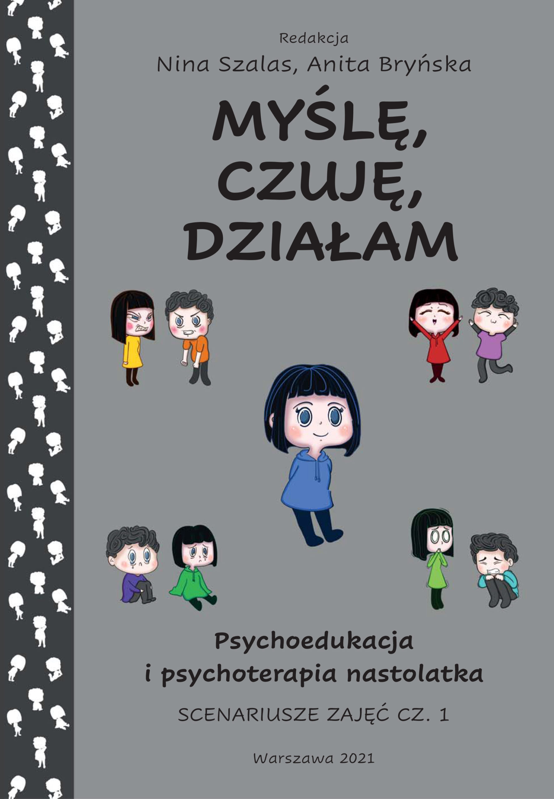 Przedstawiamy Państwu propozycję warsztatowych spotkań grupowych, które mogą być realizowane w ramach ambulatoryjnej lub stacjonarnej opieki psychologicznej, psychoterapeutycznej lub psychiatrycznej dla dzieci i młodzieży. Po dokonaniu modyfikacji, ćwiczenia mogą również być wykorzystywane do prowadzenia oddziaływań w ramach terapii indywidualnej i stanowić cenną pomoc w realizacji zindywidualizowanego i wynikającego z konceptualizacji pacjenta i jego problemu programu postępowania. Interwencje terapeutyczne odnoszą się do najczęściej spotykanych problemów emocjonalnych i behawioralnych okresu adolescencji i czerpią przede wszystkim z nurtu poznawczo-behawioralnego. Całość opracowania obejmuje kompendium „Myślę, czuję, działam: psychoedukacja i psychoterapia nastolatka”, zawierające scenariusze spotkań dla terapeutów oraz zeszyty ćwiczeń dla uczestników. Pierwsze 4 rozdziały poświęcono podstawowym umiejętnościom wykorzystywanym w prowadzeniu terapii nastolatków z różnymi problemami emocjonalnymi i behawioralnymi (Techniki poznawcze, Umiejętności regulacji emocji, Samoocena, Umiejętności interpersonalne), kolejne mają stanowić pomoc w prowadzeniu oddziaływań ukierunkowanych na leczenie problemów internalizacyjnych i eksternalizacyjnych, samookaleczeń oraz zaburzeń odżywiania. Serdecznie zachęcamy do skorzystania z naszej propozycji pracy Nina Szalas, Anita Bryńska