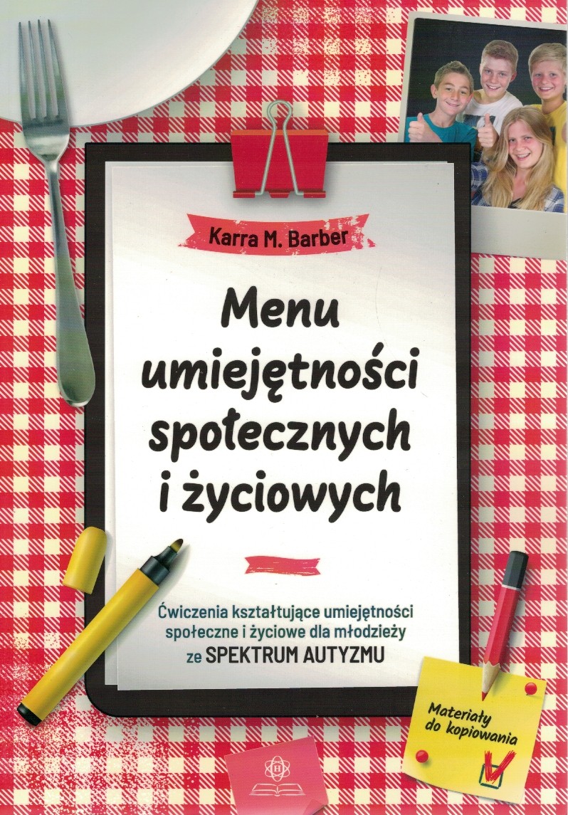 "W okresie dorastania rozwój społeczny i status dziecka w grupie rówieśniczej mają kluczowe znaczenie. Nastolatkom z zaburzeniami ze spektrum autyzmu (ASD) interakcje społeczne nie przychodzą naturalnie, więc młodzi ludzie często potrzebują wsparcia, by nauczyć się, jak postępować. Książka Menu umiejętności społecznych i życiowych prezentuje przystępne strategie, które pomogą nastolatkom z ASD nawiązać kontakt i zbudować więź z innymi osobami w domu, w szkole, w pracy, a także podczas spotkań ze znajomymi oraz w trakcie codziennych interakcji z sąsiadami. Wykorzystanie schematu menu pozwala łatwiej rozpoznać trzy etapy każdej interakcji: jej rozpoczęcie („przystawkę”), rozwinięcie („danie główne”) i zakończenie („deser”). Liczne kwestionariusze, szablony i przykładowe scenariusze społeczne zachęcą uczniów do przemyślenia odpowiedzi oraz do rozważenia, jak druga osoba mogłaby zareagować na ich słowa. Przećwiczenie prostych strategii i rozwiązanie zestawu codziennych zadań społecznych korzystnie wpłynie na ocenę własnych możliwości, zwiększy pewność siebie i rozwinie umiejętności życiowe osób z ASD. Książka będzie przydatnym narzędziem dla wszystkich nastolatków i młodych dorosłych z trudnościami w inicjowaniu i podtrzymywaniu interakcji społecznych, a także dla ich rodziców, nauczycieli oraz terapeutów. " [Tania Książka.pl]