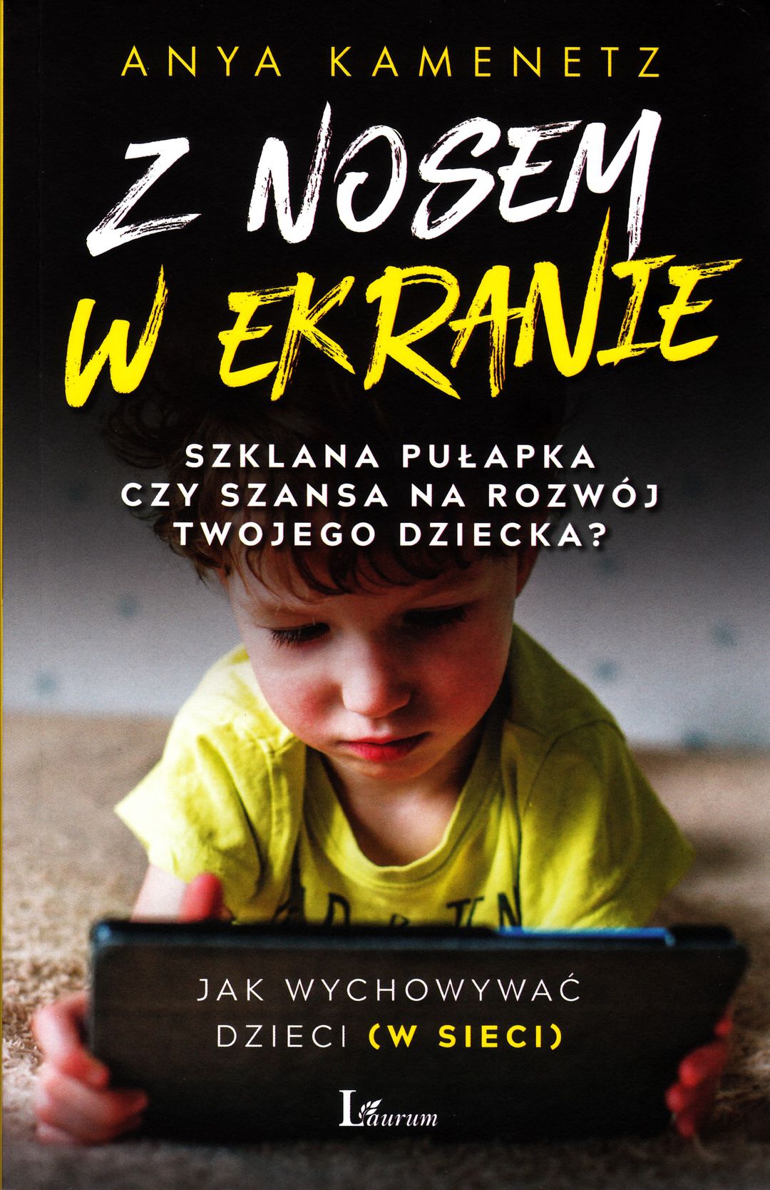 Współczesne dzieci często debiutują w mediach społecznościowych już z chwilą, gdy zostaną uchwycone na obrazie USG. Zaczynają stykać się z ekranami około czwartego miesiąca życia. To dobrze czy źle? Wspaniała szansa na podtrzymywanie relacji niezależnie od dzielącej ludzi odległości czy też pierwszy krok do stworzenia otumanionego pokolenia wgapionych w ekrany zombie? Wielu bez wahania uznało to za początek neurologicznej i emocjonalnej katastrofy, lecz – co zaskakujące – trudno natrafić na rzetelne badania na ten temat. W swojej książce „Z nosem w ekranie” Anya Kamenetz – ekspertka w dziedzinie edukacji oraz nowych technologii, ale również matka dwojga dzieci – prezentuje świeże i praktyczne spojrzenie na ten problem. Po przeprowadzeniu rozmów z setkami rodziców na temat stosowanych przez nich rozwiązań i wyznawanych poglądów oraz po przedarciu się przez gąszcz nierozstrzygających badań i rozdmuchanych obaw, proponuje proste rozwiązanie inspirowane znaną sentencją Michaela Pollana odnoszącą się do jedzenia: Ciesz się technologią. Z umiarem. Najlepiej w towarzystwie.