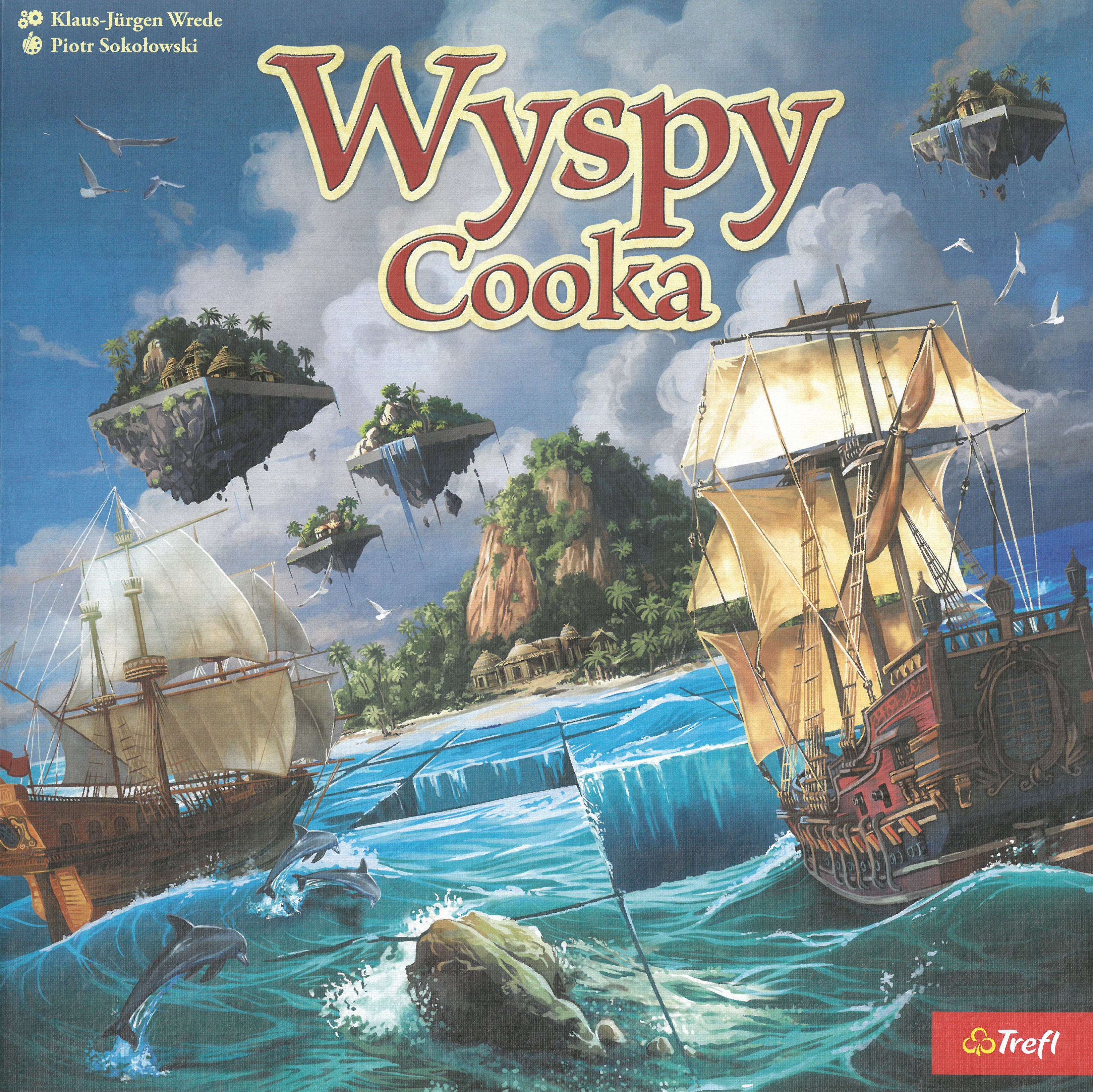 Wyspy Cooka / Klaus-Jürgen Wrede ; ilustracje Piotr Sokołowski. - Gdynia : Trefl, [2024]. - 1 gra (plansza, 69 kafelków morza, 7 kafelków wysp początkowych do gry dwuosobowej, 7 kafelków wysp początkowych do gry trzy- i czteroosobowej, 16 żetonów skarbów, znacznik pierwszego gracza, 1 statek piracki, 8 statków odkrywców, 48 wiosek): karton, plastik, tektura, kolor ; w pudełku 7x29x29 cm + instrukcja.