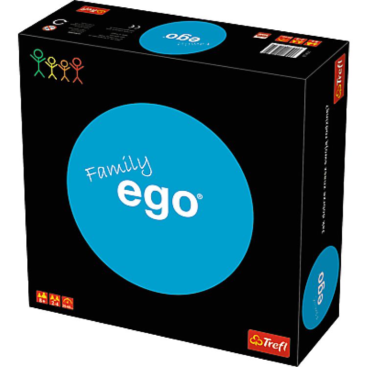Ego family. - Gdynia : Trefl, 2016. - 1 gra (1 plansza, 165 dwustronnch kart z pytaniami, 16 żetonów odpowiedzi, 60 małych żetonów, 4 żetony graczy) : karton, tektura, plastik, kolor ; w pudełku 26x26x9 cm + instrukcja (1 karta : ilustracje ; 25 cm).