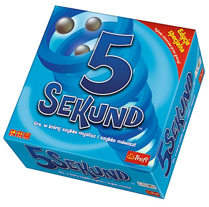 5 sekund / opracowanie gry Sławomir Czuba, Jacek Zdybel ; opracowanie graficzne Adam Strzelecki. - Edycja specjalna. - Gdynia : Trefl, copyright 2016. - 1 gra (362 karty z pytaniami, 16 kart na własne pytania, 6 kart "Nastepny", 6 kart "Zmiana", 6 pionków do gry, 1 plansza do gry, 1 specjany czasomierz, 1 pudełko na karty) : karton, plastik, tektura, kolor ; 26x26x8 cm + instrukcja ([4] strony ; 21 cm).