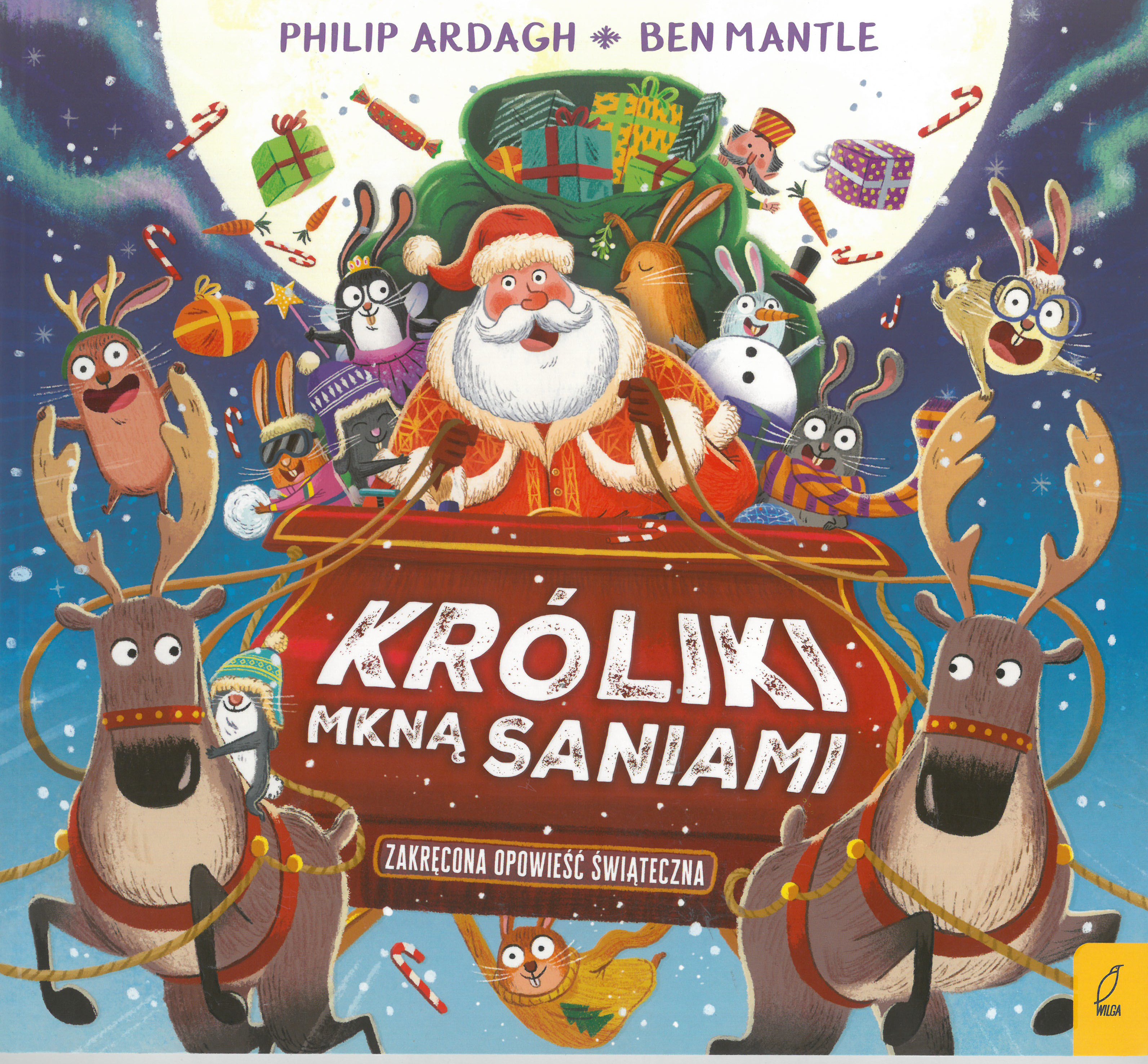 Króliki mkną saniami : Zakręcona opowieść świąteczna / Philip Ardagh, Ben Mantle. - Warszawa : Wilga, 2023. - [32] strony : ilustracje kolorowe ; 25 cm.