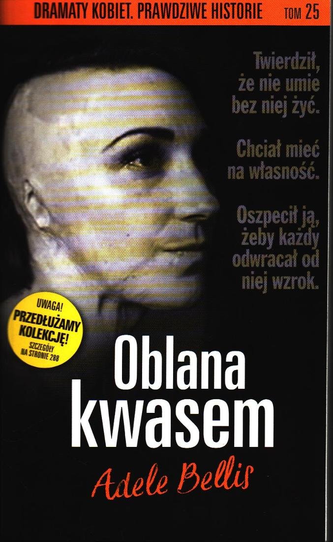 Adele miała szesnaście lat, gdy poznała Anthony’ego Rileya. Był czuły, opiekuńczy i zakochany do szaleństwa. Kiedy powiedział: „Nie chcę, żebyś rozmawiała z innymi chłopakami”, była pewna, że to dowód wielkiej miłości. Potem zabronił jej widywać się z rodzicami i przyjaciółmi. Zmusił, by skasowała swoje konto na Facebooku. Zadręczał telefonami. Zamykał w domu. Wyzywał. Straszył. Bił. Gdy wreszcie odważyła się z nim zerwać, wynajął bandytę, który oblał ją kwasem. Adele pozostanie okaleczona na zawsze...[lubimyczytac.pl].